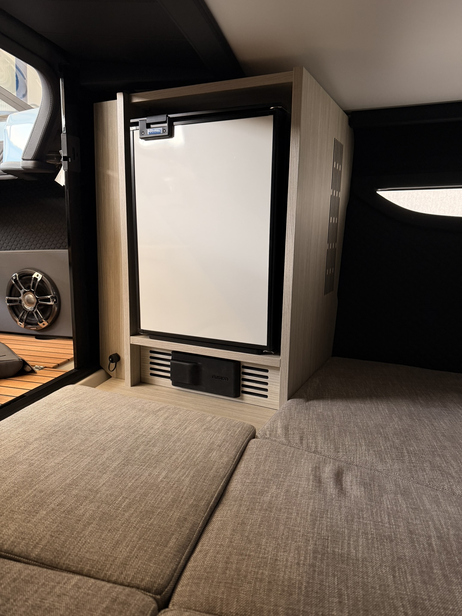Wyjątkowe nawiązanie tego modelu do tradycji podkreśla pokryty drewnem tekowym pokład dziobowy, przywołujący dziedzictwo drewnianych łodzi. Stanowi on wizualny kontrapunkt dla pokrytej drewnem tekowym platformy rufowej. Nie brak tu bynajmniej innowacyjnych, funkcjonalnych rozwiązań poprawiających komfort w każdej sytuacji. Łódź może się poszczycić dużym pokładem słonecznym, który przykrywa komorę silnika. Wysuwana markiza pozwala w razie potrzeby z łatwością zacienić kokpit. Przestrzeń do siedzenia na środku obejmuje sofę w kształcie litery L, stanowiącą przedłużenie rufowego pokładu słonecznego, oraz dwa fotele obrotowe (prawy dla sternika i lewy dla drugiego sternika). Na czas żeglowania można je zwrócić na dziób, a na potrzeby spotkań towarzyskich skierować na rufę.
