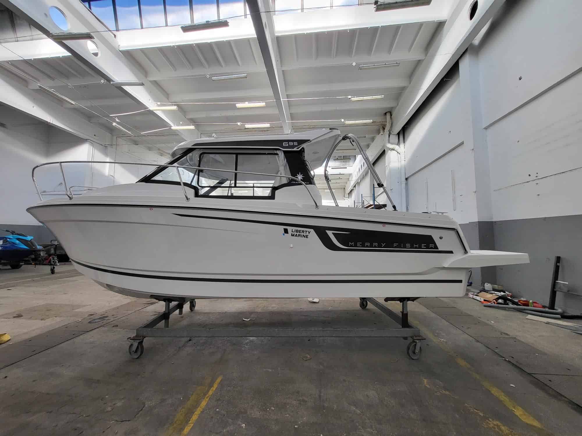 Wysokiej jakości wyposażenie sprawia, że Merry Fisher 695 Series 2 jest idealnym partnerem na rodzinne wycieczki na morze: duże schowki, mały kambuz z lodówką, dwie koje dziobowe, salon z możliwością przekształcenia w dodatkową koję, oddzielna łazienka pod sterówką, kokpit zewnętrzny w kształcie litery L i szerokie platformy pływackie... Ponadto model ten ma jeszcze jedną istotną zaletę – jest łatwy do przewożenia i przechowywania w suchym doku.