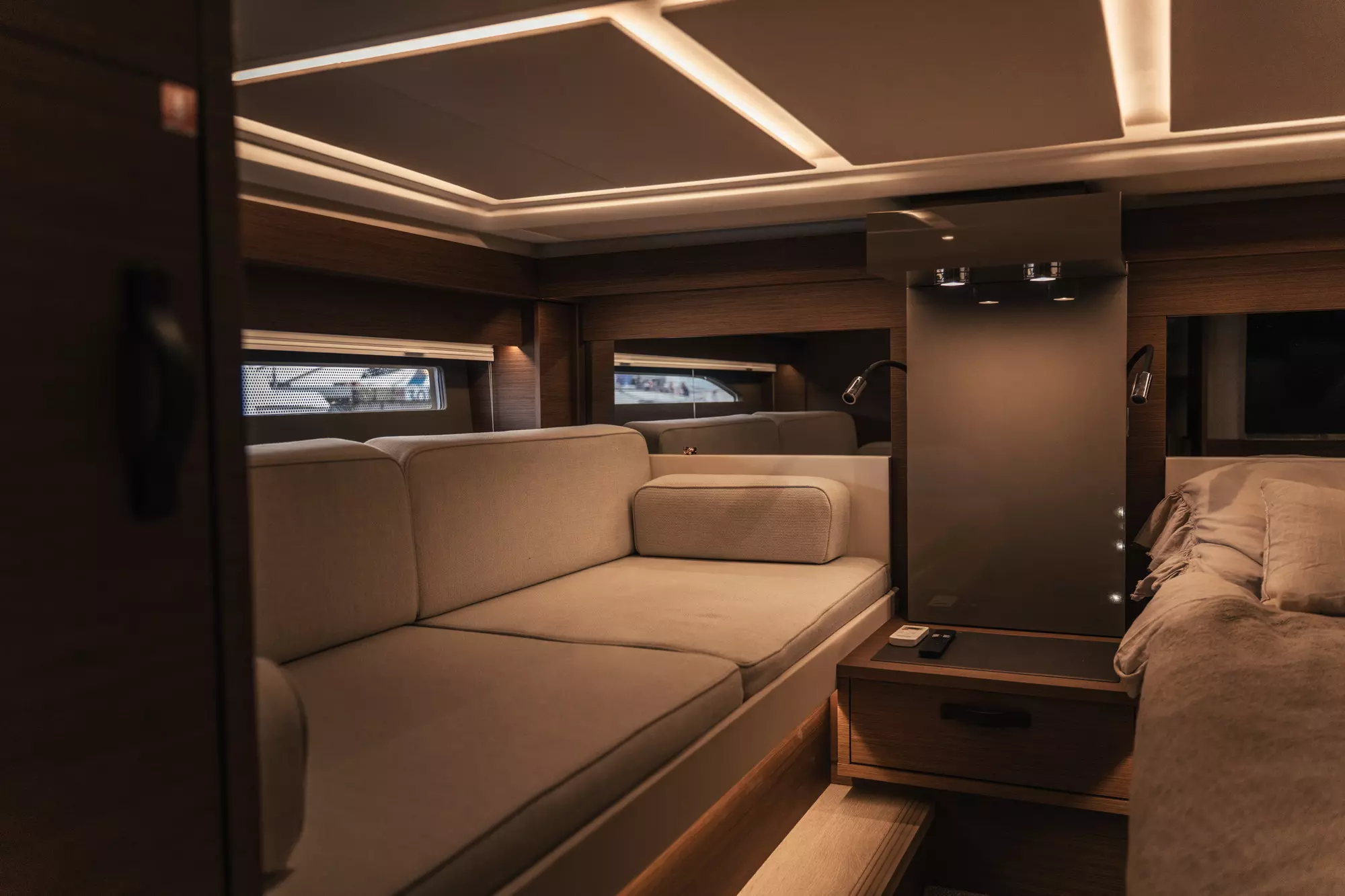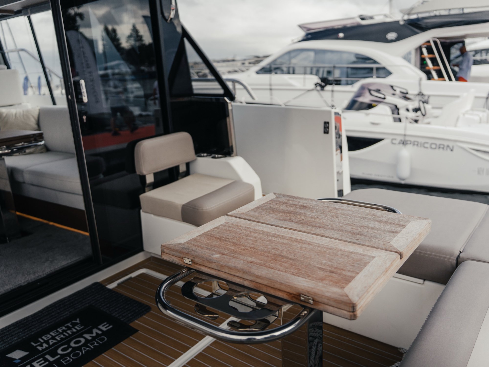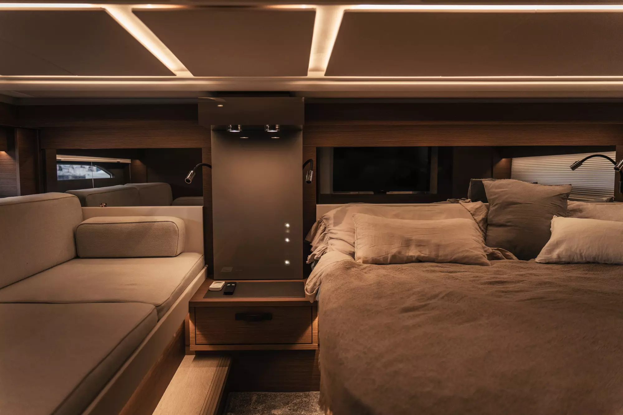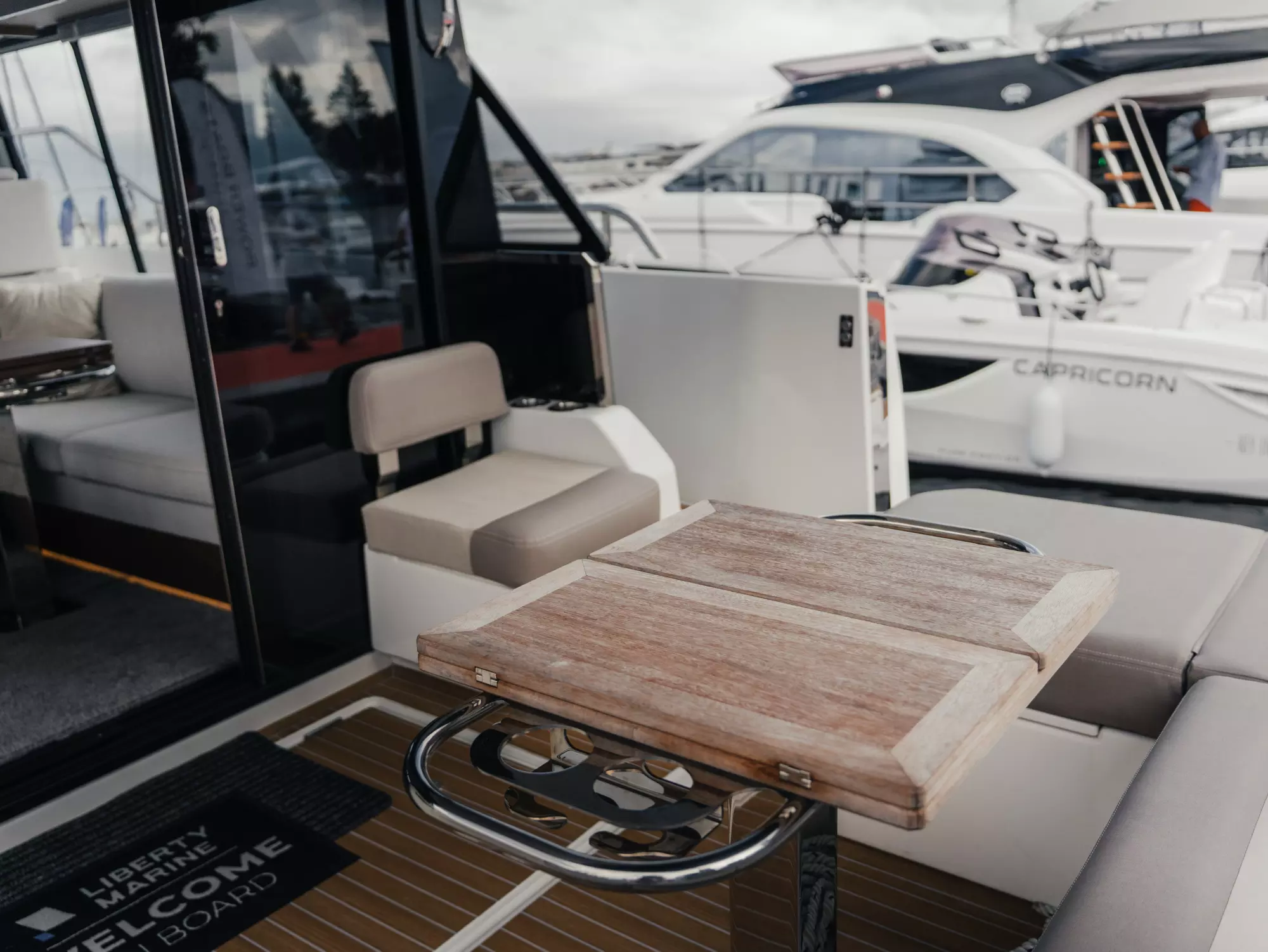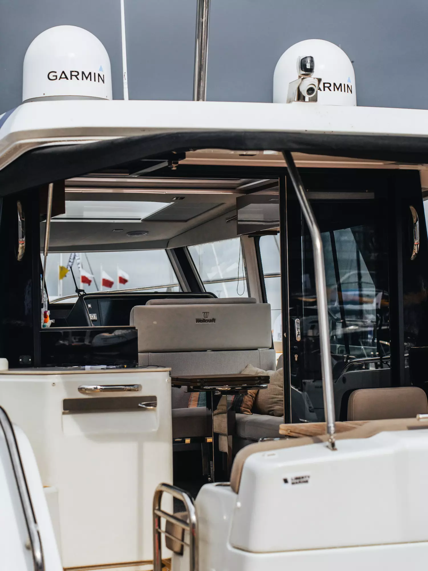 Pokład zaprojektowany z myślą o komforcie – przestronny, elegancki i gotowy na przyjęcie nawet 14 osób. Stylowe miejsce do relaksu, nowoczesna kokpitowa strefa wypoczynkowa oraz bar zapewniają idealne warunki do spędzania czasu z bliskimi.
