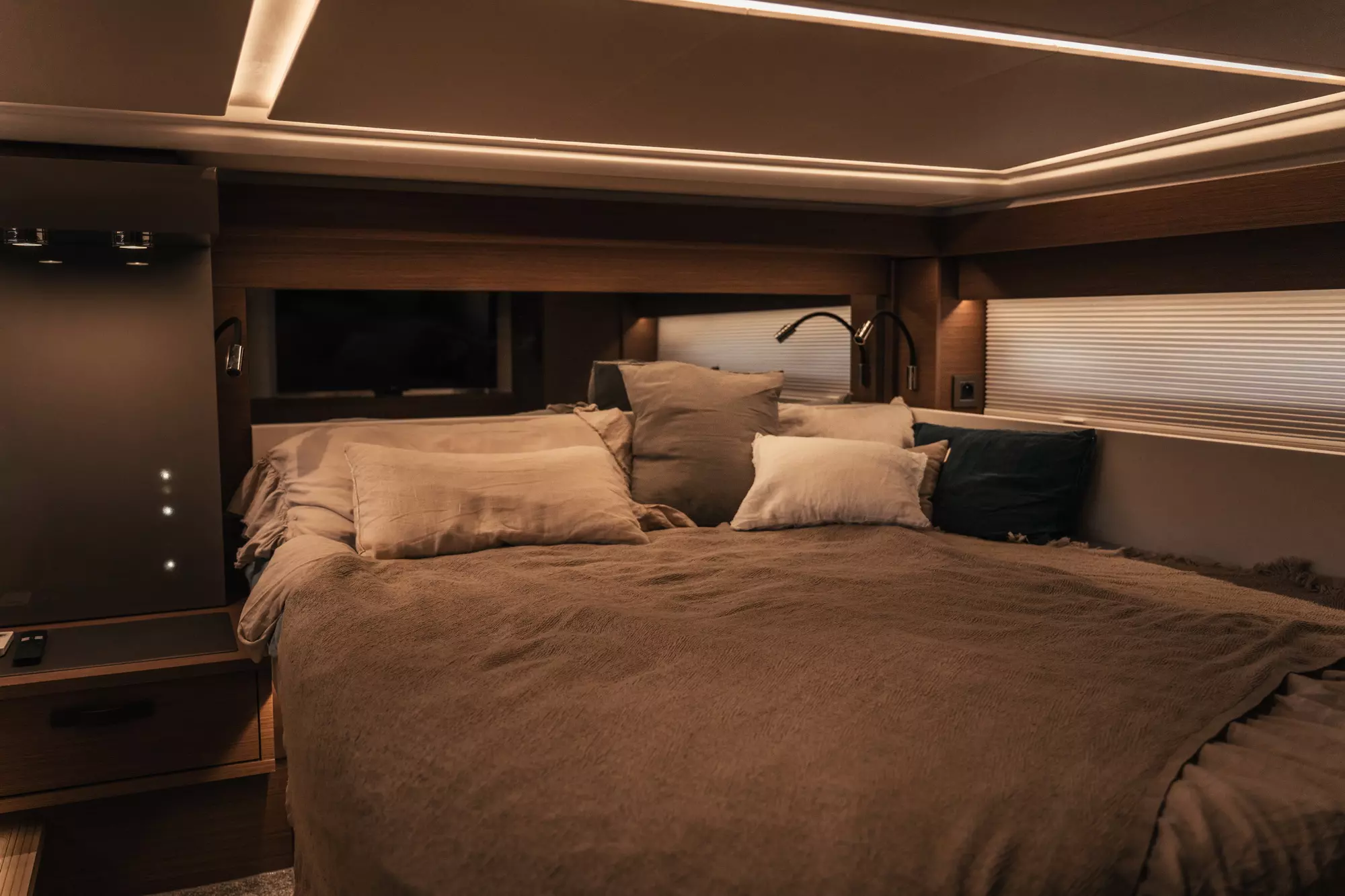 Na pokładzie znajdziesz w pełni wyposażony aneks kuchenny, dwie komfortowe kabiny o pełnej szerokości oraz 2 łazienki z oddzielnymi prysznicami – wszystko, czego potrzebujesz na dłuższy pobyt. Innowacyjne systemy multimedialne zadbają o Twoją rozrywkę podczas każdego rejsu.