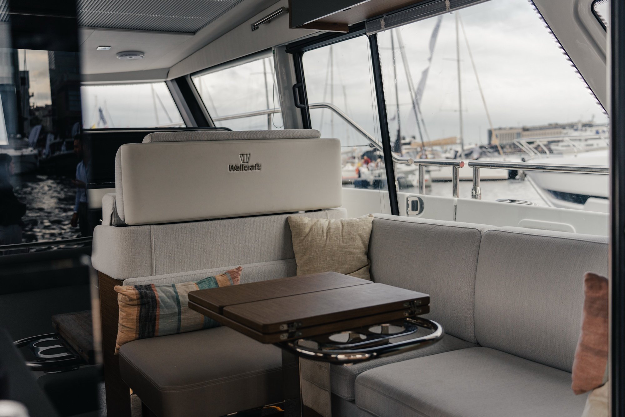 Dzięki silnikom zaburtowym o mocy 3x350 KM czyli 1050 hp Wellcraft 44 Explorer oferuje dynamiczne przyspieszenie i doskonałe prowadzenie w każdych warunkach. Niezależnie czy planujesz ekscytujące sporty wodne, czy spokojny rejs po jeziorze lub morzu – ta jednostka Cię nie zawiedzie.