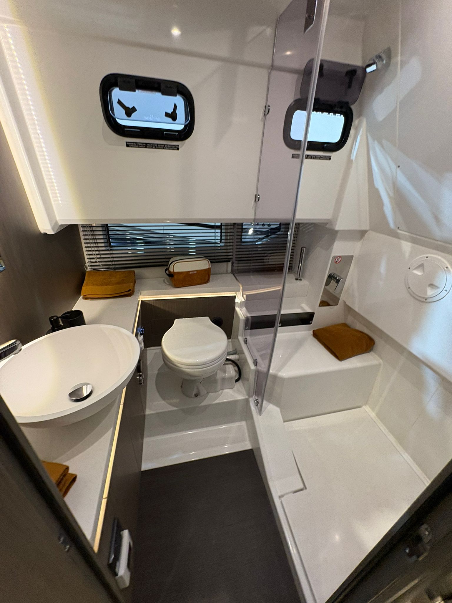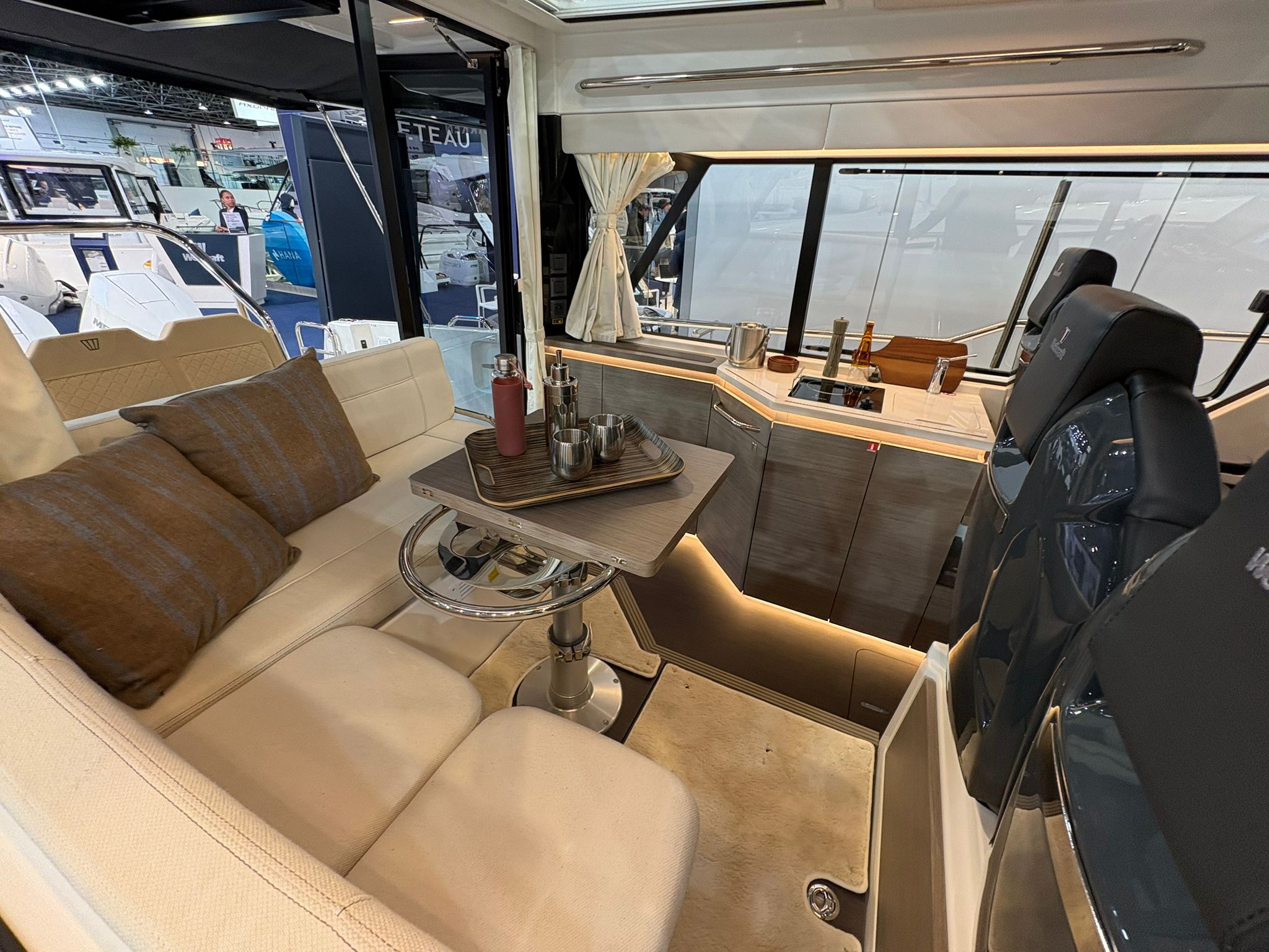 Jacht został skonfigurowany w topowej wersji Premiere, z dbałością o każdy detal ułatwiający życie na wodzie: