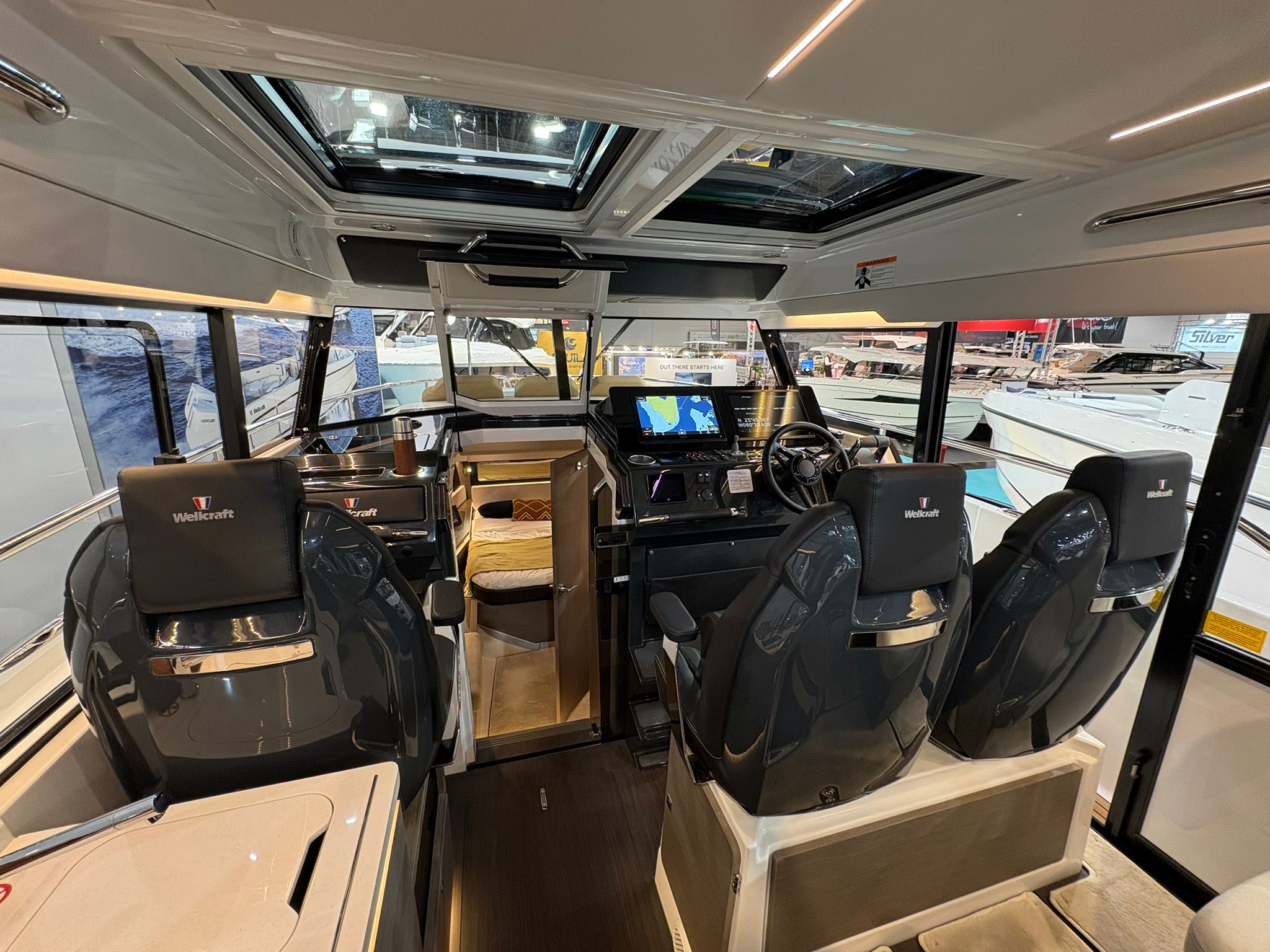 - Kadłub:Legendarny projekt Wellcraft – głębokie V, które "rozcina" fale, zapewniając suchy pokład i bezpieczeństwo przy wysokich prędkościach.